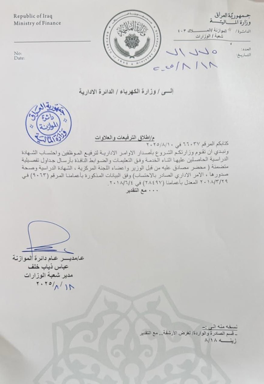 #العراق #وزارة_المالية #العلاوات #الترفيعات
