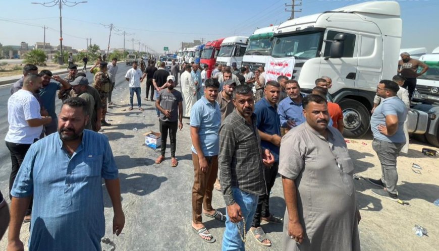 احتجاج سائقي الشاحنات في بعقوبة ضد سوء المعاملة والابتزاز