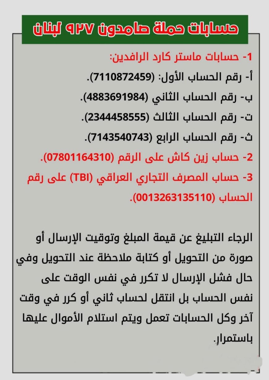 عراقيون يطلقون حملة "صامدون لبنان 927" لدعم المتضررين في الجنوب اللبناني