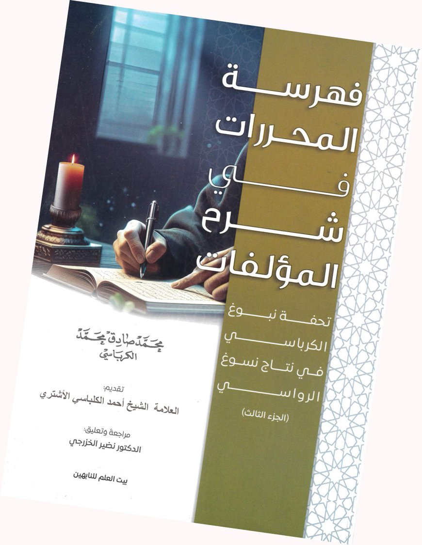وحيث وثَّق المؤلف الكرباسي في الجزء الأول مؤلفات جده الخامس الفقيه الشيخ محمد جعفر بن محمد طاهر الكرباسي الأشتري النخعي (1080- 1175هــ = 1669- 1761م)، وثَّق في الجزء الثاني حياة جده الرابع الفقيه الشيخ محمد حسن بن محمد جعفر الكرباسي الأشتري النخعي (ن 1150- 1190هـ = 1737- 1776م)، وحياة ومؤلفات جده الثالث الإمام الشيخ محمد إبراهيم بن محمد حسن الكرباسي الأشتري النخعي (1180- 1261هــ = 1766- 1845م)، وفي الجزء الثالث الصادر في بيروت حديثا (2025م) عن بيت العلم للنابهين في 289 صفحة من القطع الوزيري وراجعه وعلّق عليه (الكاتب) الدكتور نضير الخزرجي وثّق مؤلفات جده الثاني الفقيه الشيخ محمد جعفر بن محمد إبراهيم الكرباسي الأشتري النخعي (1219- 1292هــ = 1804- 1875م)، وجده الأول المباشر الفقيه الشيخ أبو تراب علي بن محمد جعفر الكرباسي الأشتري النخعي (1279- 1337هـ = 1862- 1919م)، ثم مؤلفات والده الفقيه الشيخ محمد بن أبو تراب علي الكرباسي الأشتري النخعي (1324- 1399هــ = 1906- 1979م).